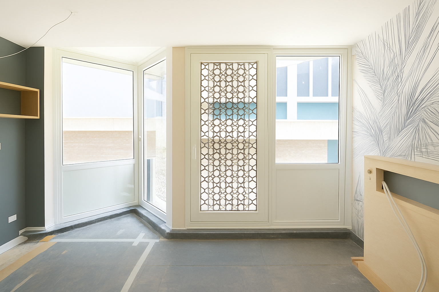 For Granada Glazing’s technicians, a particular challenge on the project were the primary windows which are in the curtain walling and open inwards. This required the horizontal sliding units to be measured and designed with the correct panel offsets to allow the primary windows to open through the secondary frames.