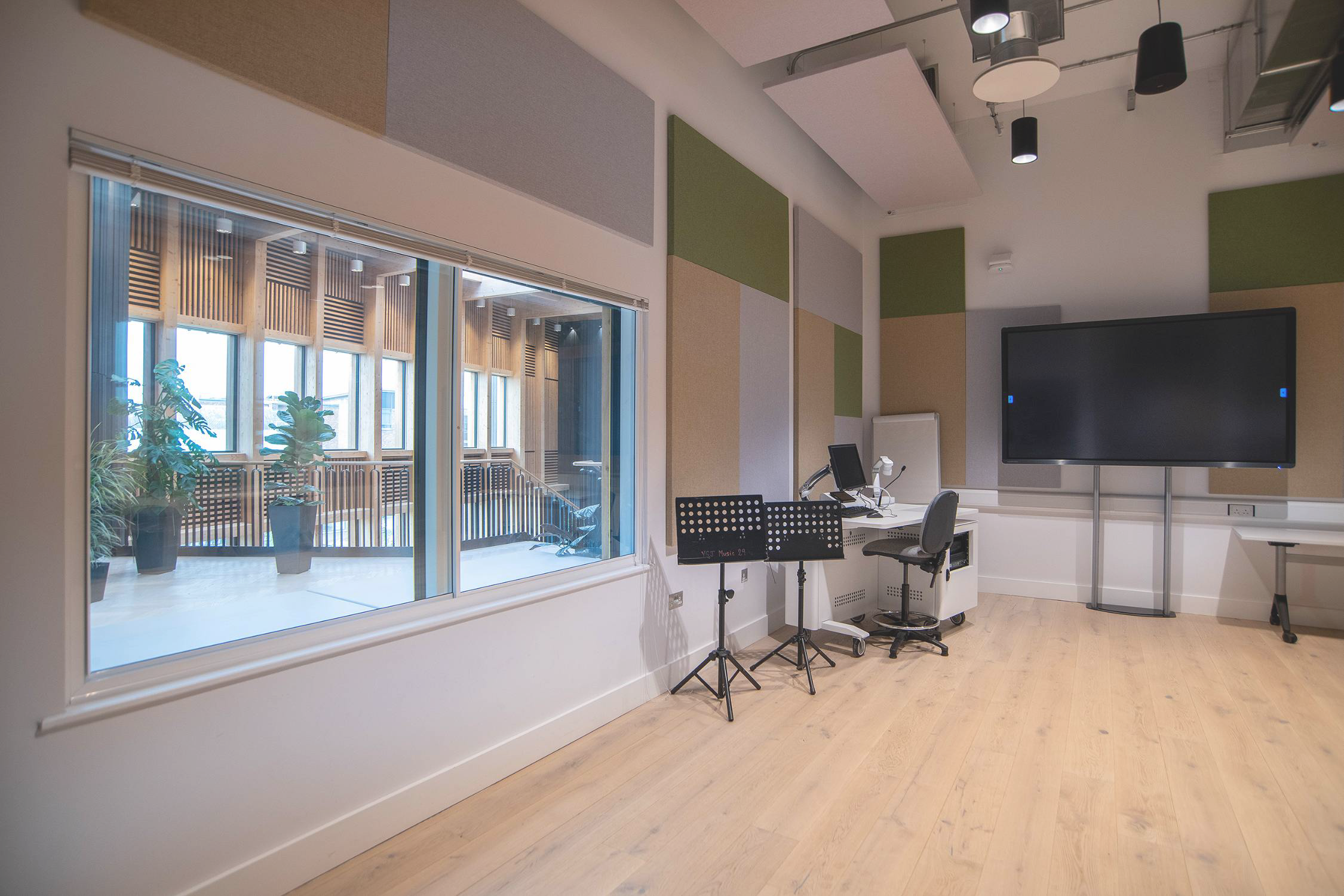 The secondary glazing units were installed in recording studios, teaching rooms, and percussion spaces, delivering a professional sound environment for students without affecting the building’s modern interior design.